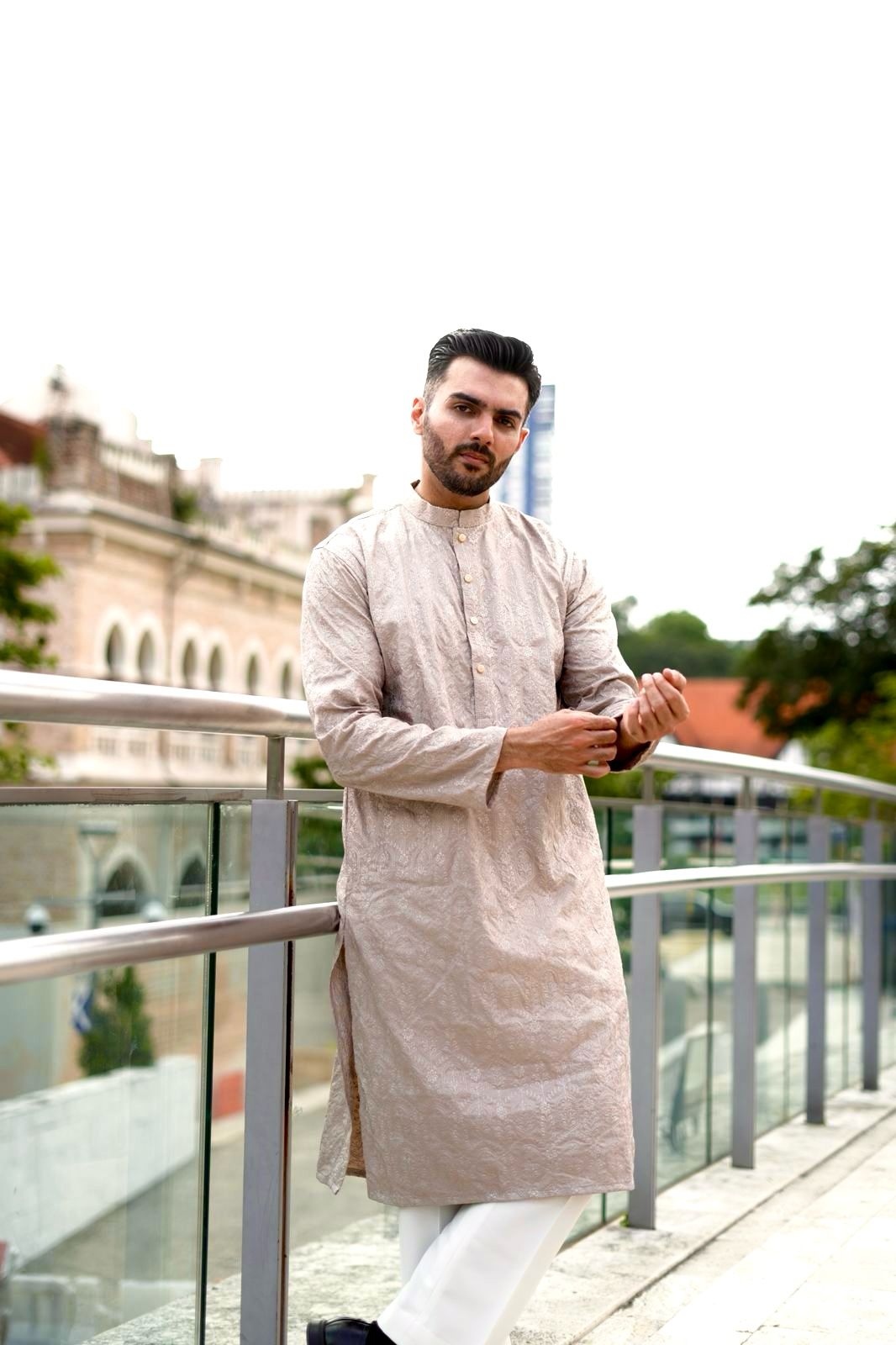 Unstitched Indian White Gold Cloth Four Pieces (Print and Aari)