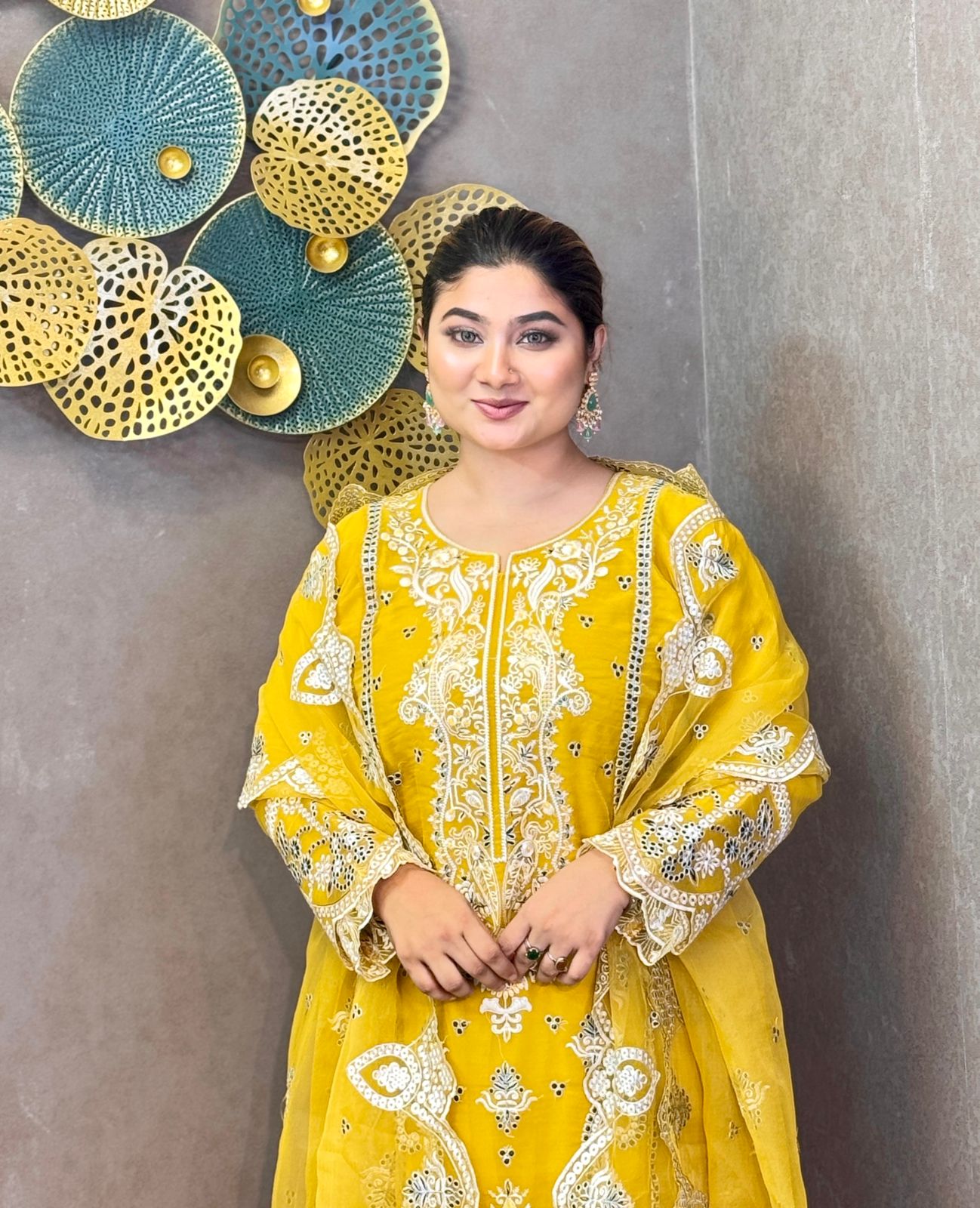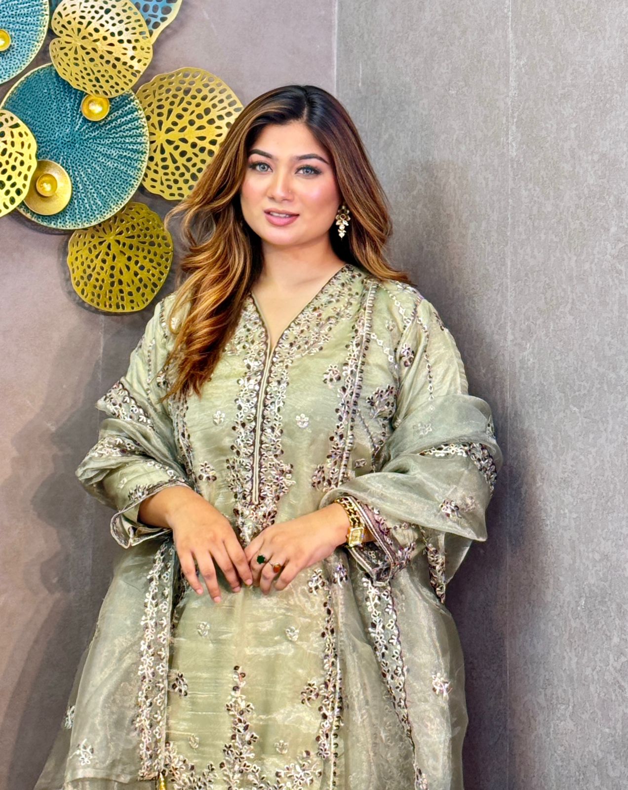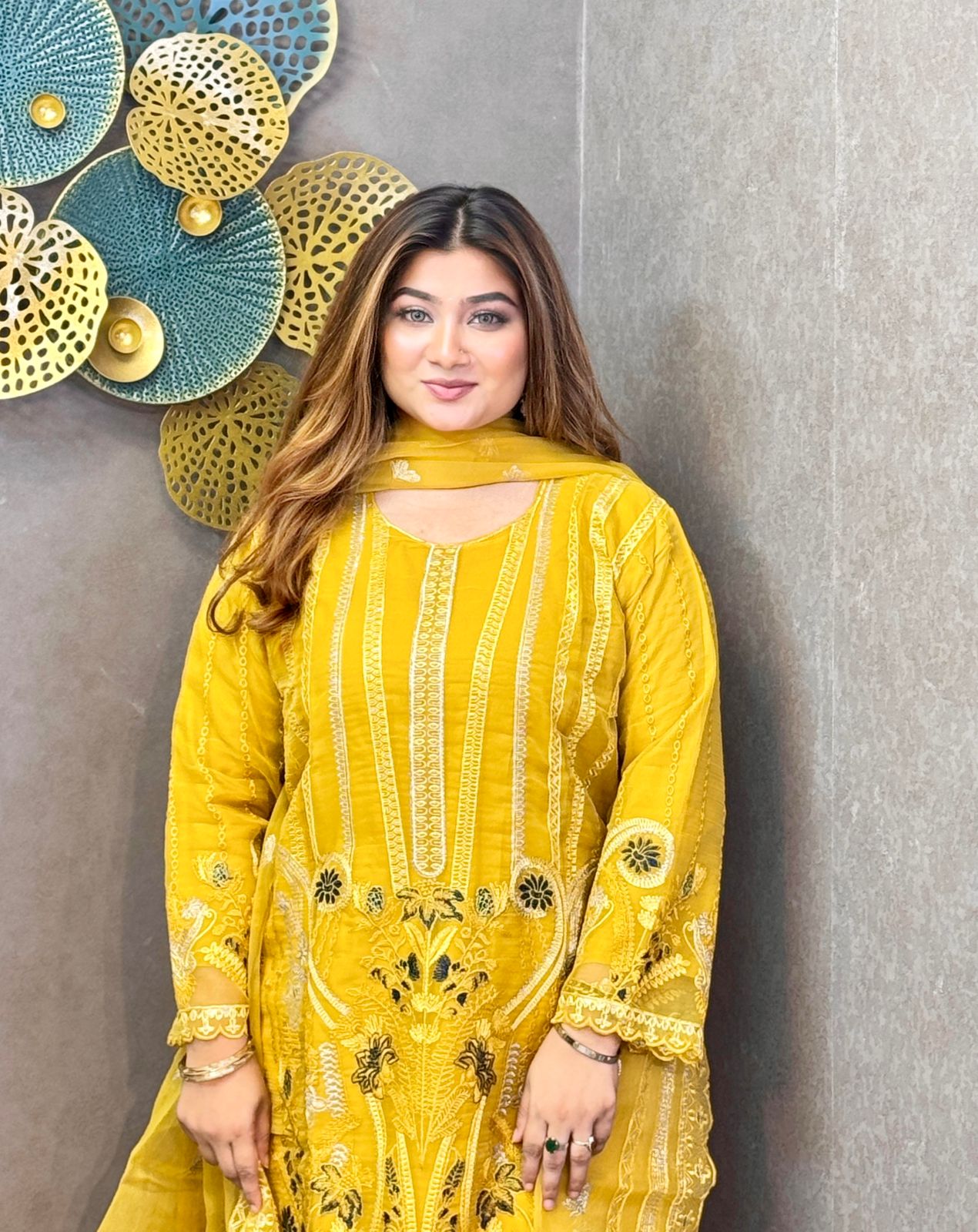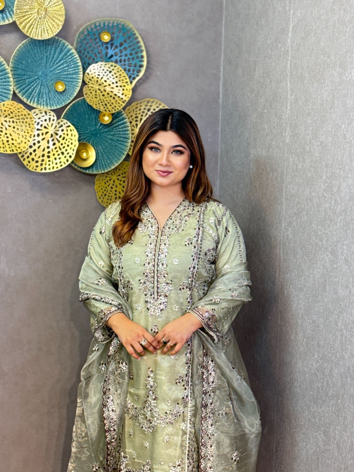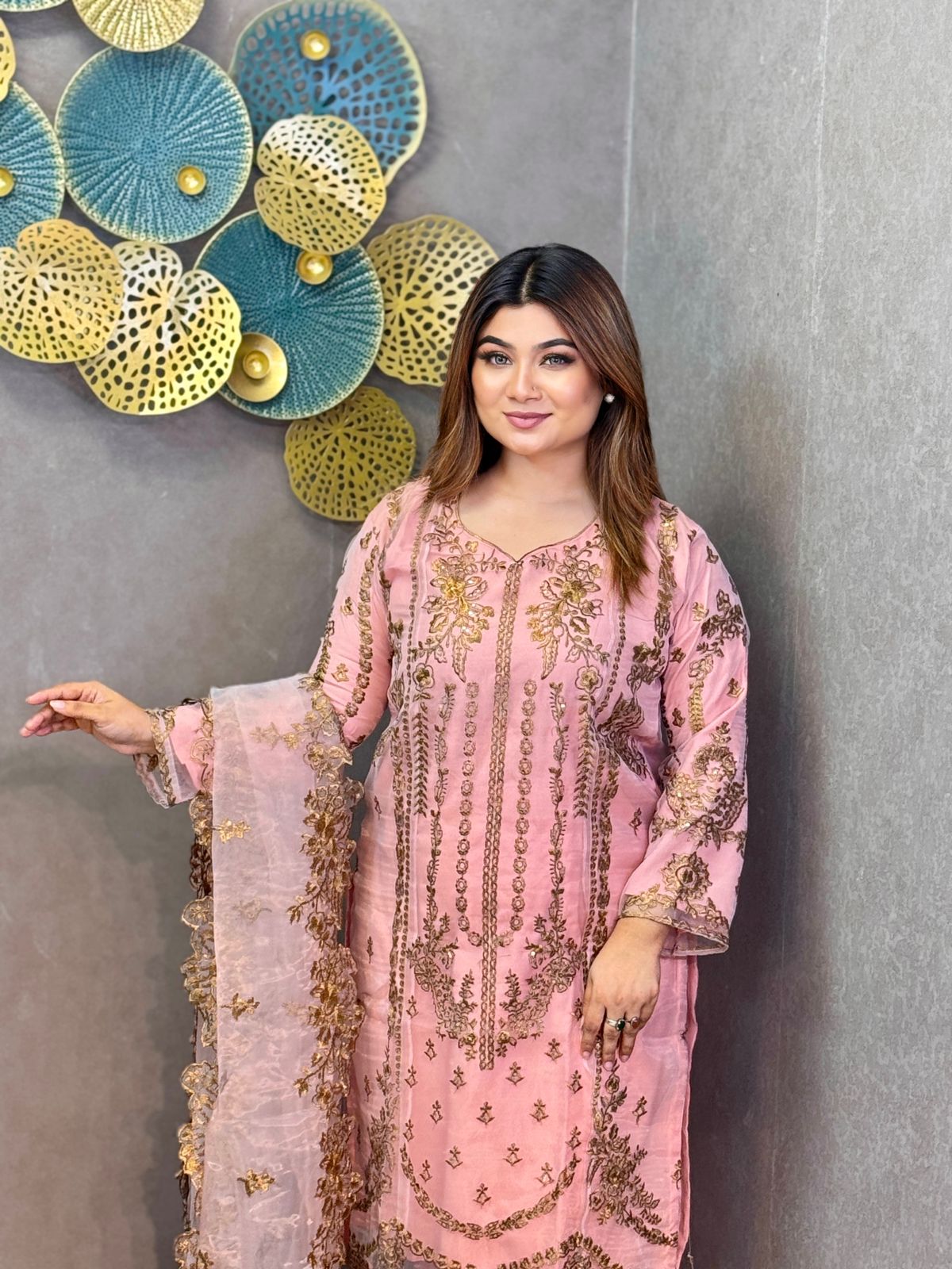Unstitched Organza Four Pieces (embroidery & karchupi thread work)