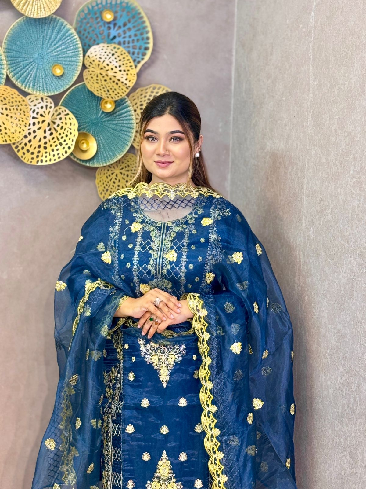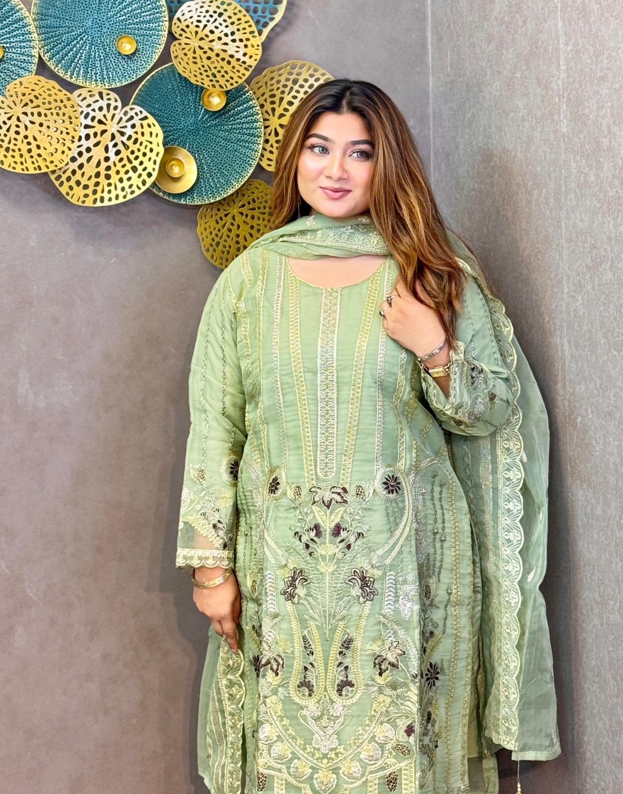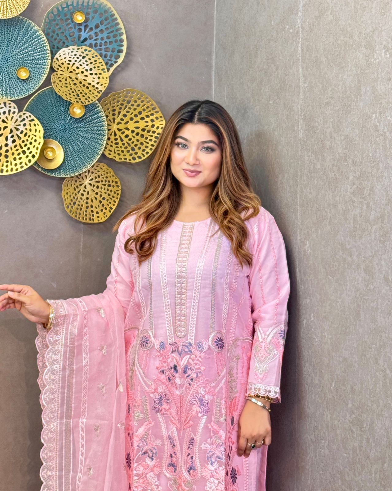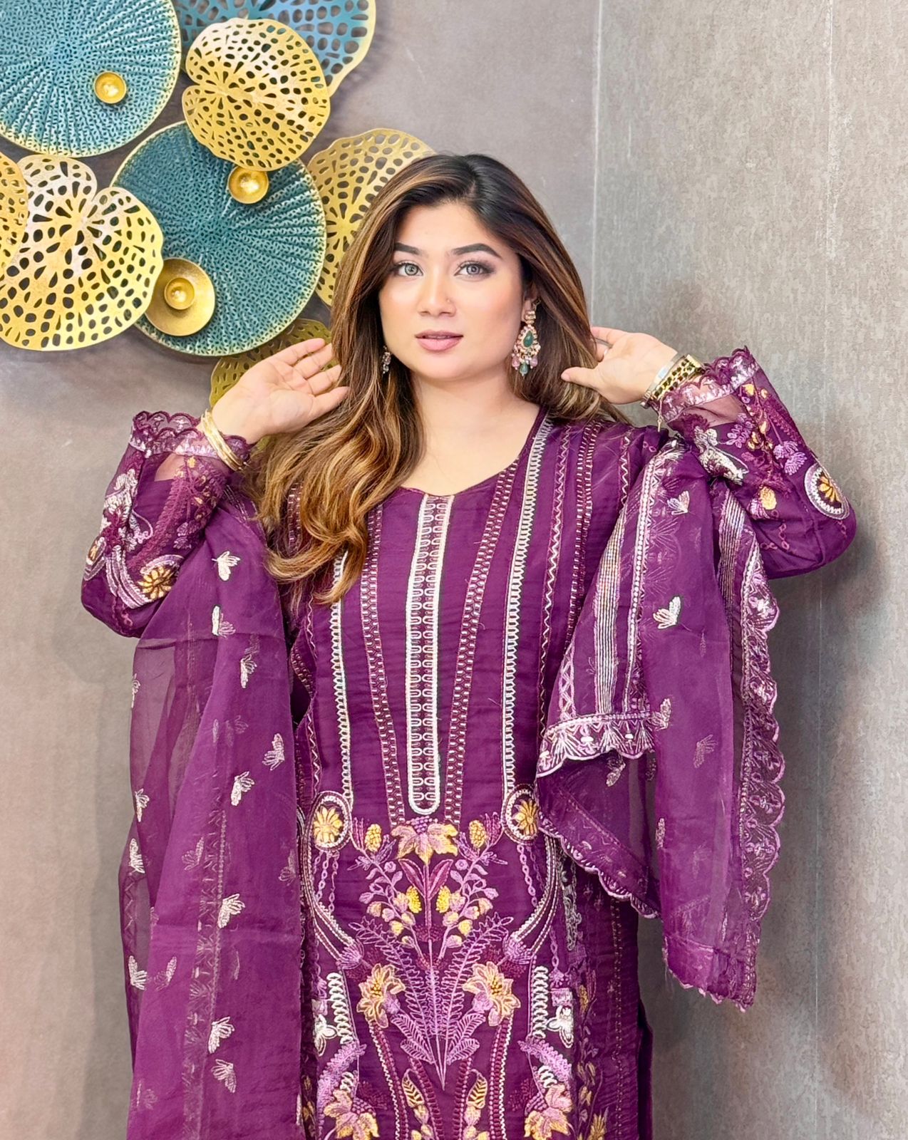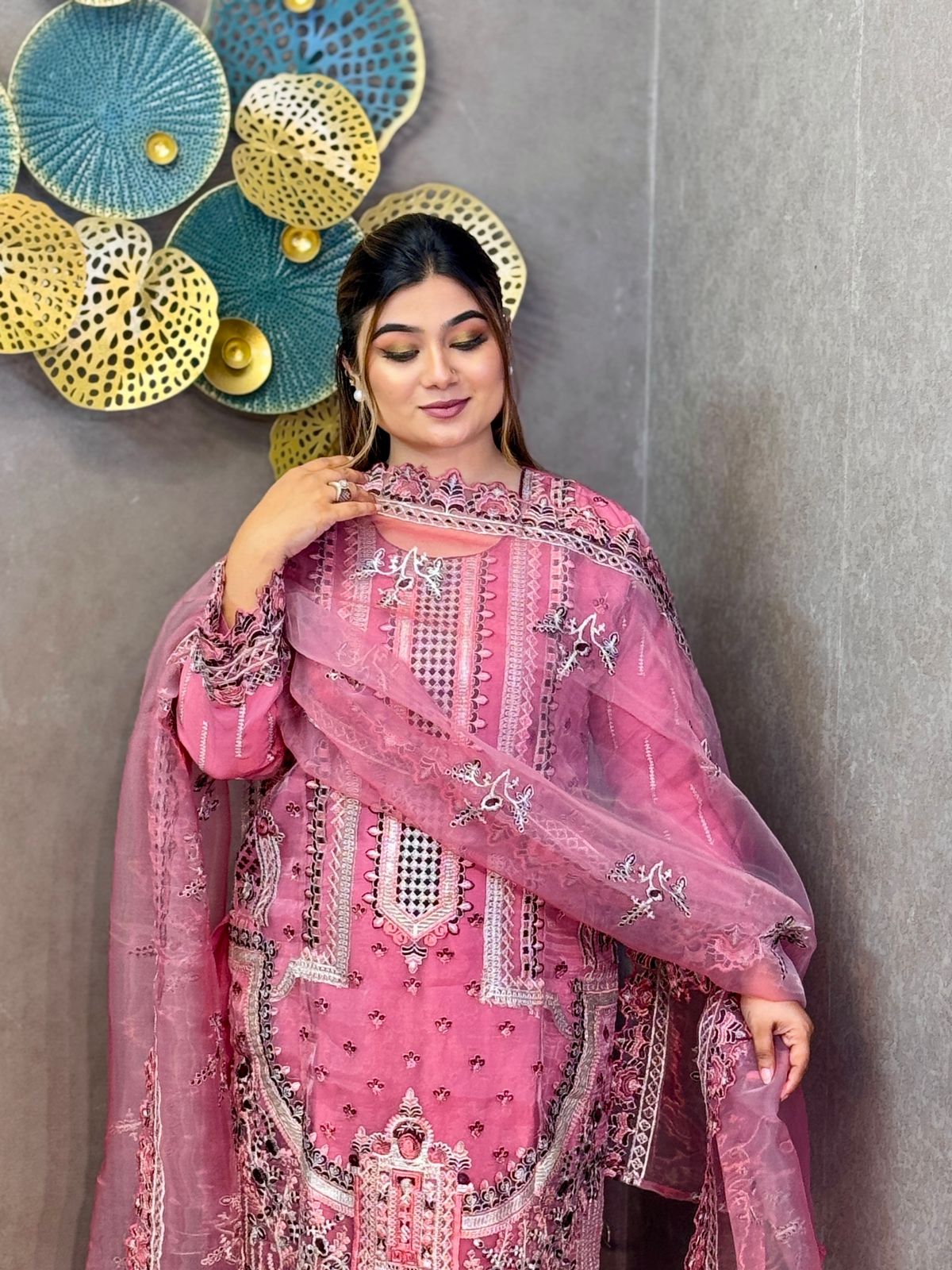 Unstitched Pakistani organza fabric four sides (printed and embroidered)