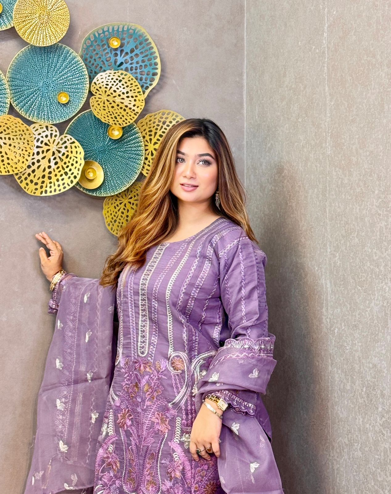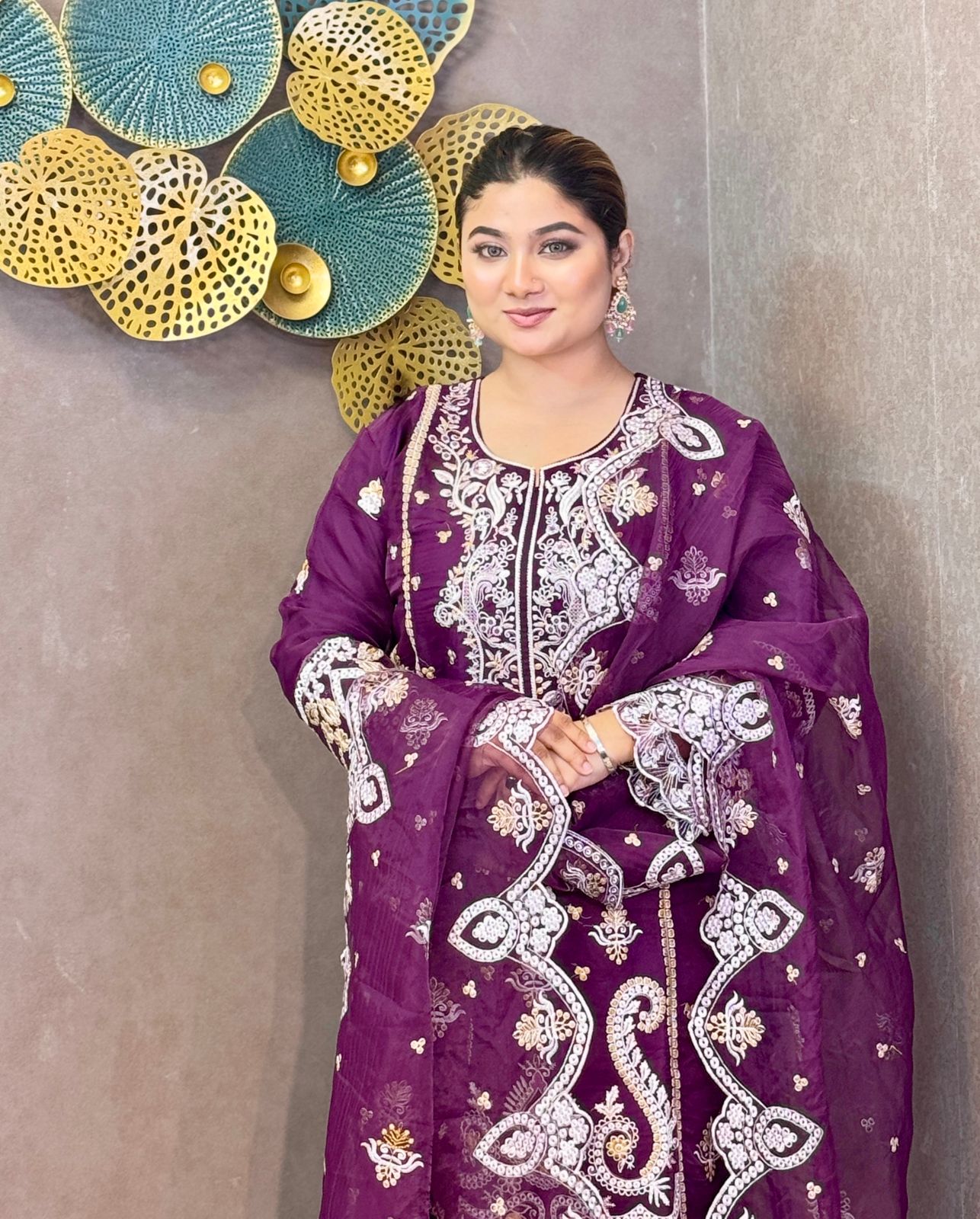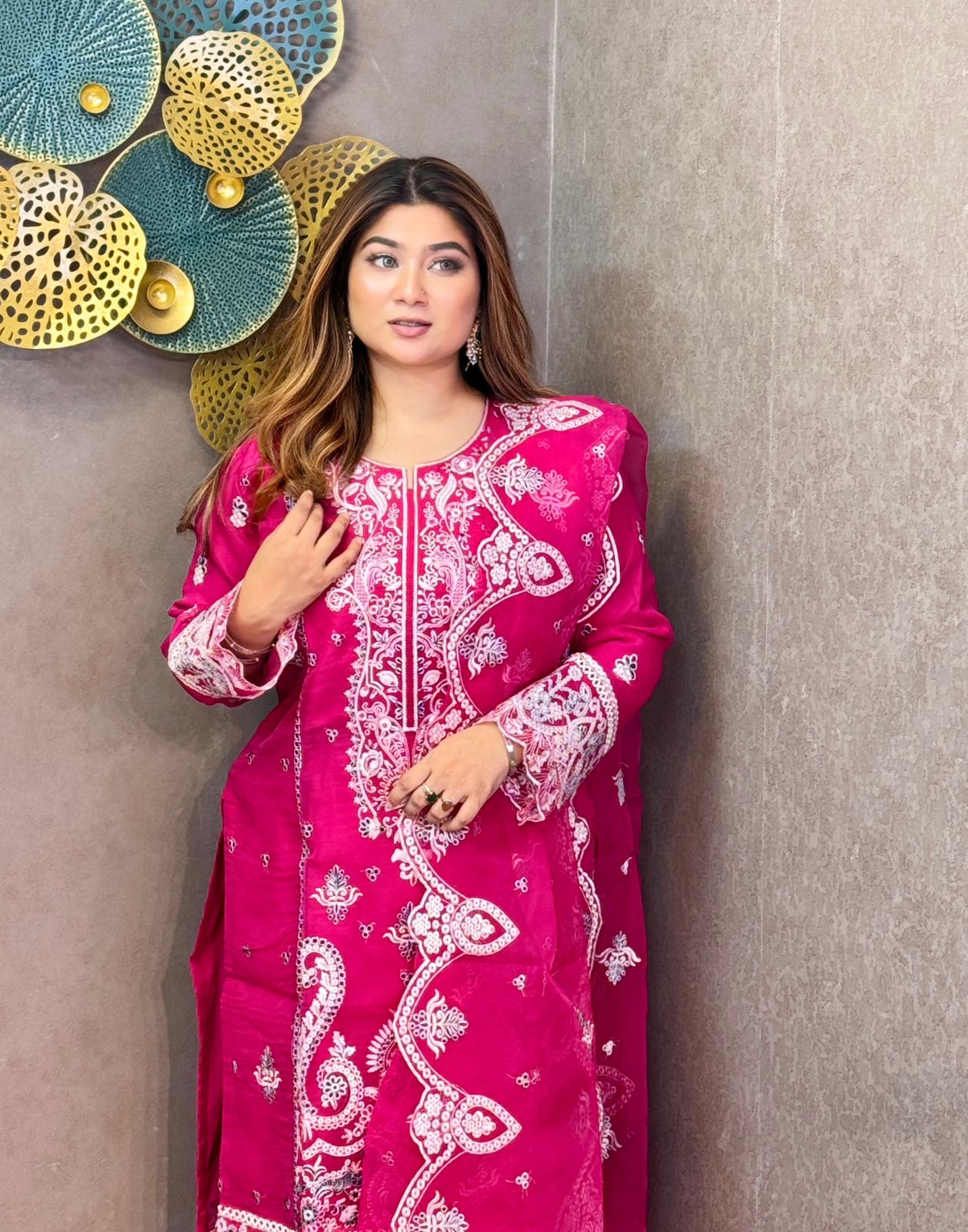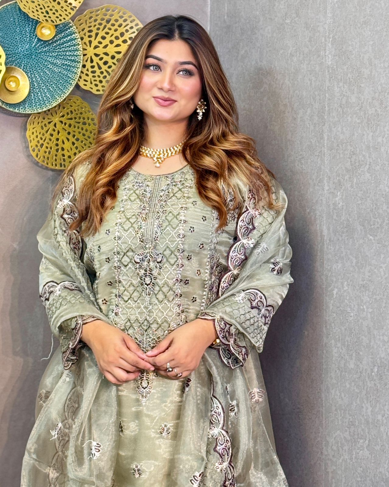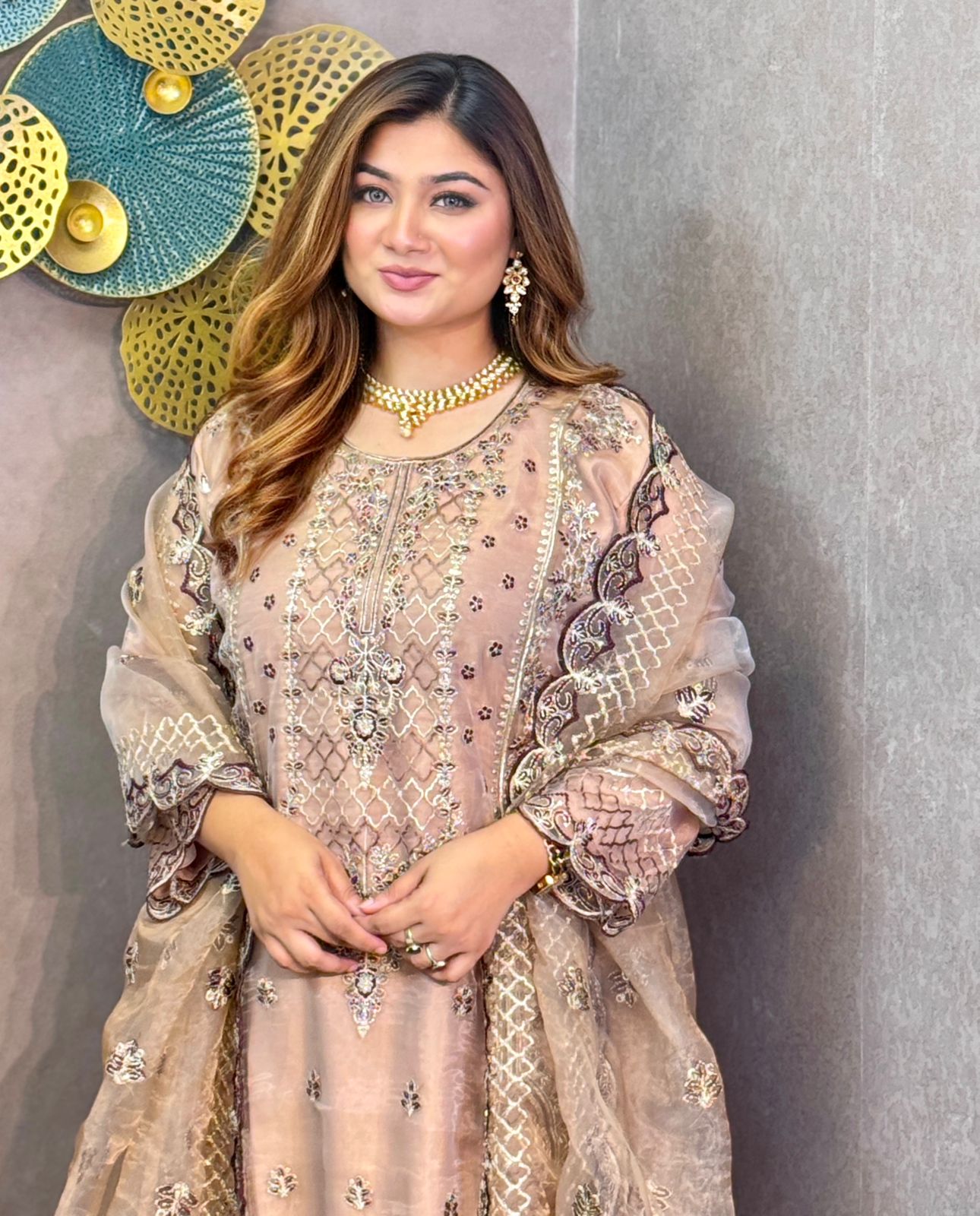 Unstitched Pakistani organza fabric four sides (printed and embroidered)