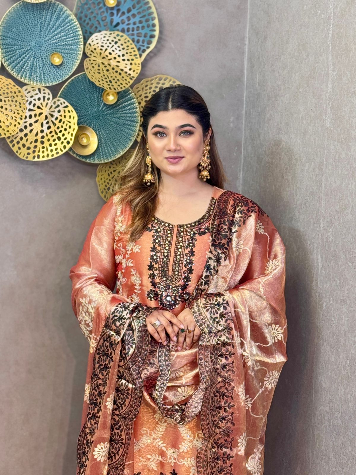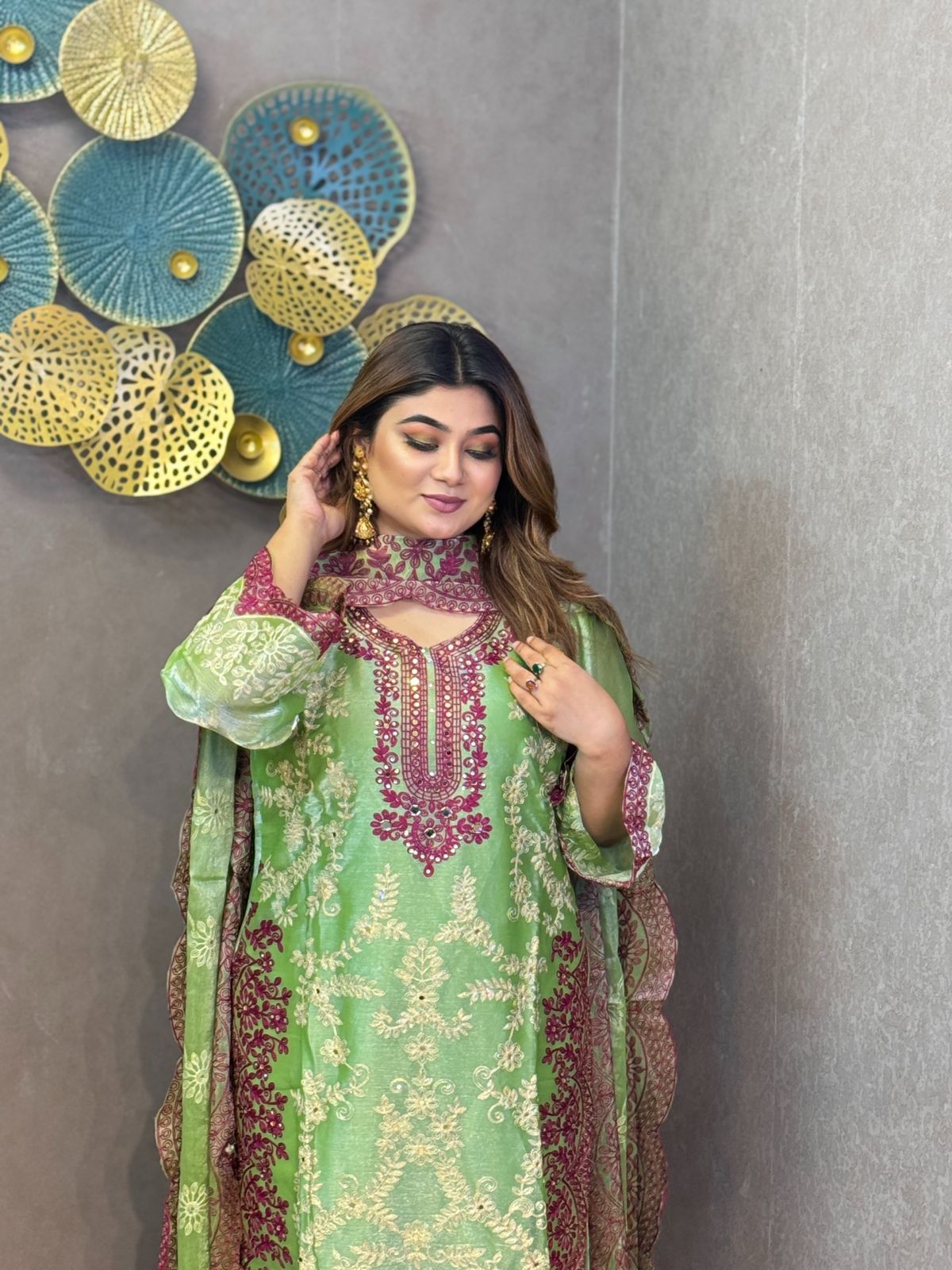 Unstitched Pakistani organza fabric four sides (printed and embroidered)
